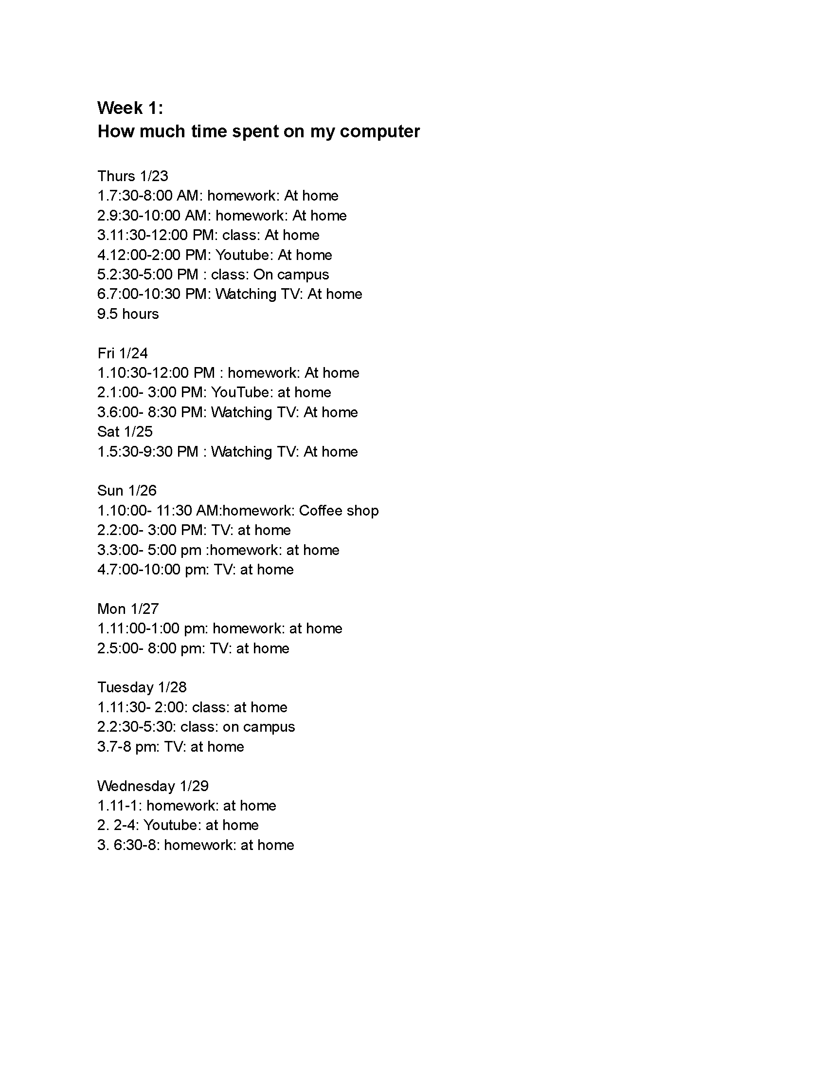 Week 1: Time Spent on My Computer