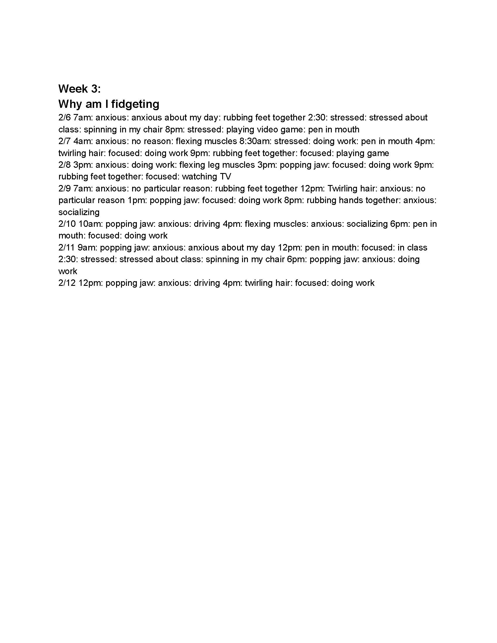 Week 3: Why Am I Fidgeting?